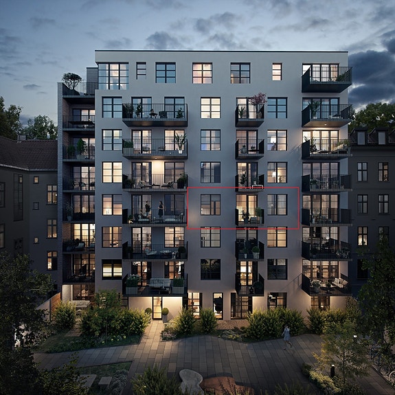 Eksklusiv og ubebodd 2-roms i 5.etg | Balkong på 5 m² | Heis | Takhøyde på ca. 2,9 M | Felles takterrasse | IN-ordning