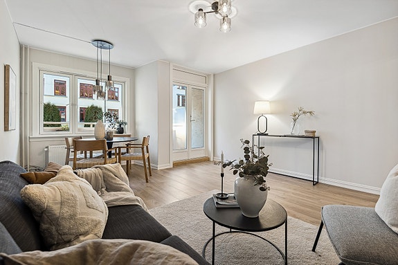 Svært innbydende, lys og nyoppusset 3-roms med solrik balkong, felles hage og garasje med el-lader.