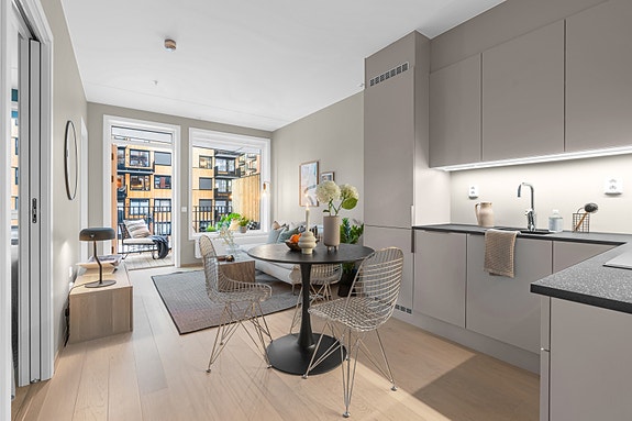 Rålekker og lys 2-roms toppleilighet med balkong og utsikt. Ferdigstilt januar 2024. Heis og takterrasse. 5 års garanti