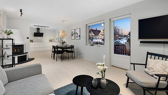 Nyoppusset 4-roms med flotte detaljer - Solrik balkong - God intern beliggenhet - Garasjeplass - Nær marka og senter