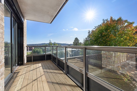 Lekker og nyoppført hjørneleilighet - Markterrasse med vidstrakt utsikt - IN-ordning - 5 års nybyggaranti - Garasjeplass